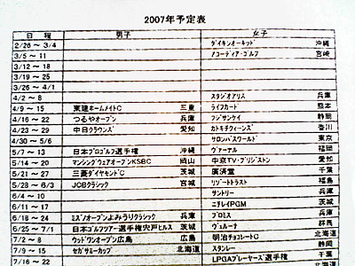 この頃には既に今年の予定が発表されているので、大まかに自分がキャディ する試合を決めていきます。例えば、1人の男子選手を1年間通しで担ぐ専属の約束をした場合は、男子ツアーが空いている週に女子に行くのか休むのかを考え、フリーで動く場合には男子ツアーに行くのか女子ツアーに行くのか、そして開幕から数試合どの選手のキャディをするのか等を計画していきます。