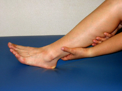 ふくらはぎのマッサージ 足首から膝の方向へ、手のひらでさするようにしましょう |