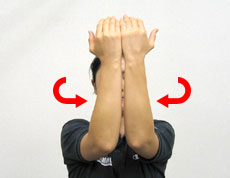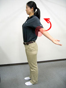 また、スイングを力強くするためや肩の安定性を保つために、胸と肩、肩甲骨周囲の筋肉を動かしましょう。