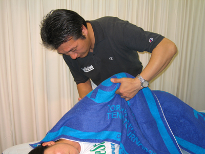 その内容は、午前中に2時間のマッサージを受け、筋肉と神経に刺激を与えるトレーニングを行い、午後は医師から運動生理学などの勉強会を受けるという、からだと頭のオーバーホールを行っているようです。