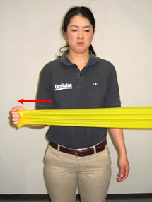 棘上筋のトレーニングは、肩をやや前方の方へ外転させましょう。