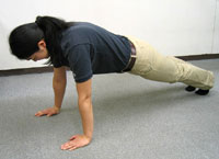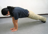 また、肩関節と肩甲骨の安定性を保つトレーニングとして、腕立て伏せの状態で20~30秒我慢するトレーニングにもチャレンジしてみて下さい。