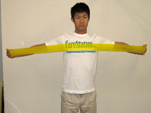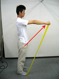 しかし、ゴルファーがあまり鍛えすぎてボディビルダーのような筋肉にすることが良いこととは思いません。 プレー中に筋肉が邪魔になって、思うようなスイングができなくなってしまうことがあるからです。 ゴルファーに求められる肩周囲の筋肉は、柔軟性があることが必要で、あまり大きな負荷をかけるトレーニングではなく、小さな負荷を徐々にかけていくのが理想のように思います。ここでは、そのようなトレーニングでチューブを使った内容のものをいくつかご紹介したいと思います。