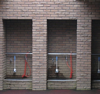 シューズについた芝や泥は、ラウンド後まず、備え付けの器具(コンプレッサー、エアーガン、濡れタオルなど)で十分に汚れを落としましょう。