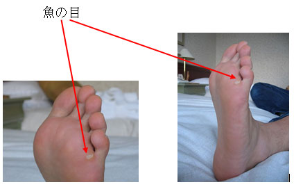 スポーツ時、気になるようであれば、魚の目を保護するものを使用する。 |