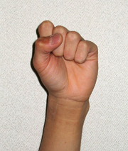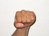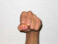 拳の山の並びがほぼ一列でない場合、手の中の中手骨という骨の長さが正常でないように思いますので、力が入りづらくなるでしょう。 |