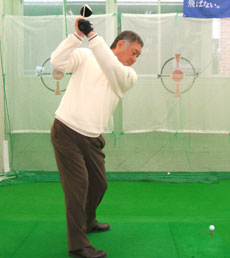 プロ 団塊の世代になると体が硬くなり、知らず知らず肩の回転が不足します。 だから、トップで左肩がきちんとアゴの下にきているか、チェックすることです。