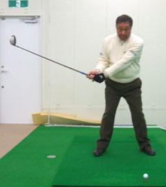 プロ そうです。手打ち感覚でヘッドから動かし、それでトップでアゴの下まで左肩が回っていない人は、回るように意識すればいいのです。