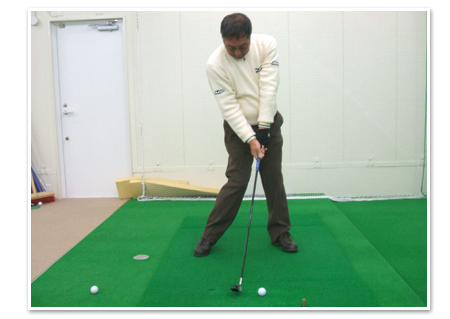 プロ ショートウッドはロフトが大きく、ヘッドが勝手にボールを上げてくれますよネ。 なのに、ショートウッドを持つと、ボールを上げないといけないと思い、体で上げにかかる人が多いのです。だからボクは、アマチュアの人には「上から叩け」と教えます。