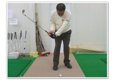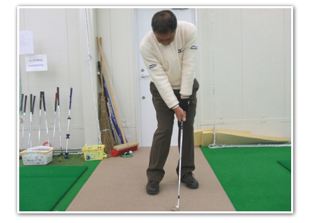 なりません。正確にボールをとらえるには、ヘッドだけ動かす小さなスイングを心がけてください。