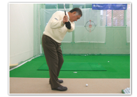 プロ ダウンスイングで体が左にスエーして、ヘッドを落とす位置が狂ってきます。